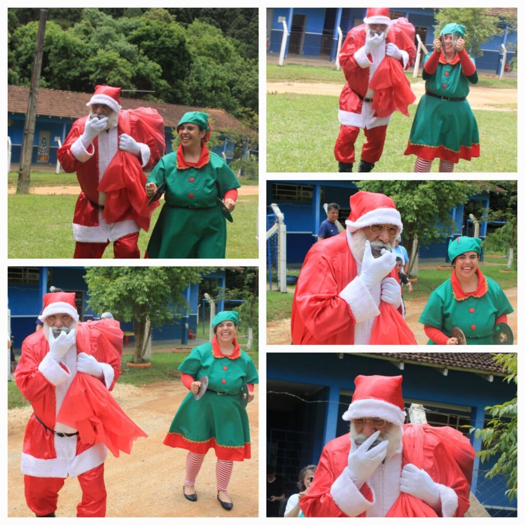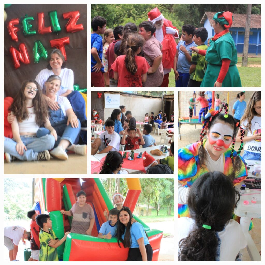 As crianças atendidas pelo Serviço de Convivência e Fortalecimento de Vínculos PETI Rural, na cidade de Campo Magro, foram apadrinhadas e receberam o Papai Noel numa linda festa. Cestas básicas e panetones também foram os presentes enviados às suas famílias.
